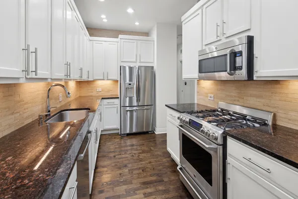 Located in the perfect location between the West Loop and River North, this spacious Fulton Market 3BR/2.5BA home will not disappoint. This well-appointed condo is in a boutique elevator building. Kitchen features a large kitchen with 42' cabinets, stainless steel appliances, wine fridge and an abundance of counter space. Living room has a room for a large sectional with custom marble fireplace. Large dining area for entertaining. Balcony off living room is perfect to relax or grill. Gorgeous primary suite with updated bathroom with split dual vanities, light up mirrors and a gorgeous shower! The 2nd bedroom and 3rd bedroom, with French doors that open to living room, are spacious. Additional house improvements remote/auto shades in LR & primary bedroom, renovated both bathrooms, black out shade over french doors in 3rd bedroom, refinished floors, new marble fireplace, all new custom window treatments, balcony floor finished with custom tiles, outlets inside bathroom cabinet for hairdryers etc, new AC, and both walk-in closets organized in primary suite. This condo is pristine and ready for it's new owner! There are 2 other large walk in closets including the entryway. Easy walk to Loop, Metra, CTA and freeway access. Walk to East Bank Club and all the restaurants i the area. Enjoy all the West Loop, Fulton Market and River North have to offer. No pending specials. Love where you live! Premium garage parking spot #36 additional 30K.