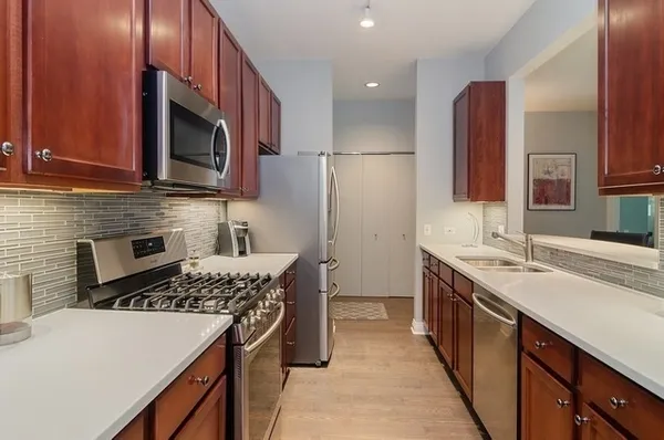IMMACULATE UNIT IN THE TRENDY FULTON MARKET DISTRICT. SITUATED STEPS AWAY FROM THE LOOP, RANDOLPH STREET RESTAURANTS, WEST LOOP AND RIVER NORTH. ENTERTAIN YOUR FAMILY AND FRIENDS INSIDE THIS BEAUTIFUL HOME AND OUTSIDE ON THE LARGE 325SF PRIVATE COURTYARD FACING TERRACE. THE SPACIOUS SPLIT FLOORPLAN FEATURES AN UPDATED KITCHEN WITH STAINLESS STEEL APPLIANCES, QUARTZ COUNTERS AND A GLASS TILE BACKSPLASH; A GAS FIREPLACE, HUNTER DOUGLAS WINDOW TREATMENTS AND NEW HARDWOOD FLOORS THROUGHOUT. IN PRISTINE CONDITION THIS UNIT IS MOVE-IN READY. A HEATED GARAGE SPACE IS INCLUDED. THIS POPULAR WELL MANAGED BUILDING WITH HIGH OWNER OCCUPANCY AND HEALTHY RESERVES BOASTS ACCESS TO THE EXPRESS WAYS, METRA, "L" AND DOWNTOWN.