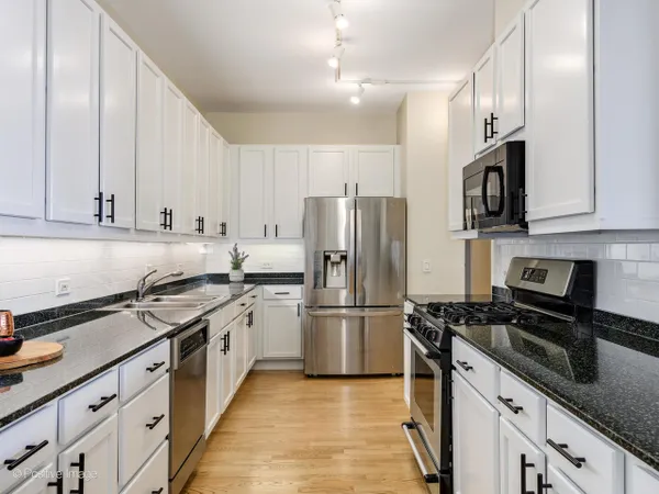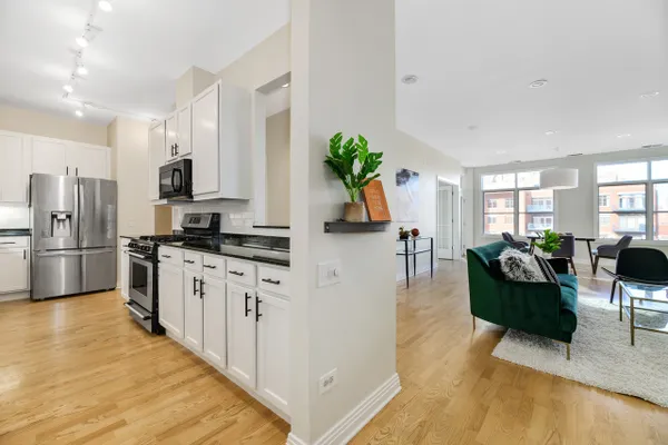 Situated in the incredible Fulton River District, this 3 Bedroom/2.1 Bath sun-drenched end unit provides the best in city living with easy proximity to all that Fulton Market, West Loop and River North have to offer! Fabulous North and East city views! Nicely renovated with fantastic updates, this unit boasts a spacious and open floor plan, great ceiling height, hardwood floors throughout the living space, a gas fireplace and private balcony off the living room with gas hookup. Kitchen features freshly painted white cabinets, stainless-steel appliances and ample storage including a huge walk-in coat closet/pantry space. Large primary suite with ensuite bath including dual split vanities, soaking tub and separate shower. Third bedroom currently has beautiful French doors allowing for an idyllic and bright office space. Wonderful laundry area with side-by-side washer/dryer. Well-maintained and secure elevator building with convenient access to the L, Metra and expressway making commuting anywhere a breeze. Unbeatable location steps to the Riverwalk, East Bank, Chicago's best restaurants and so much more! Heated, attached garage parking space available for $30,000.