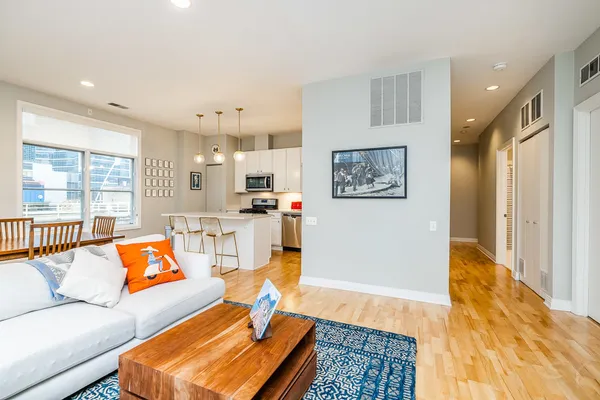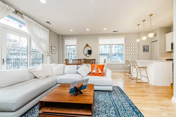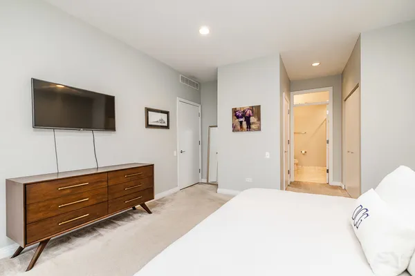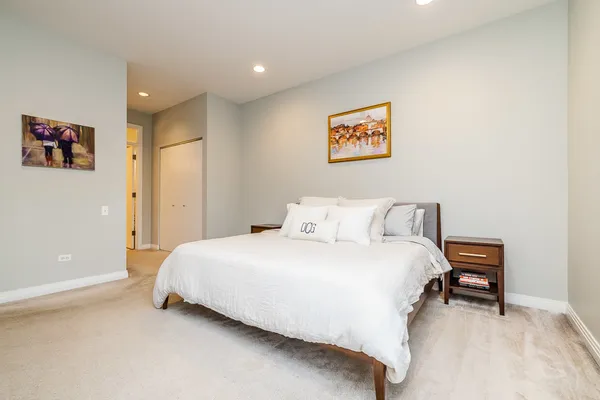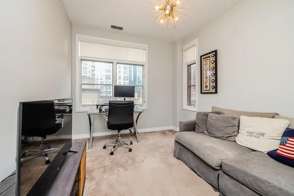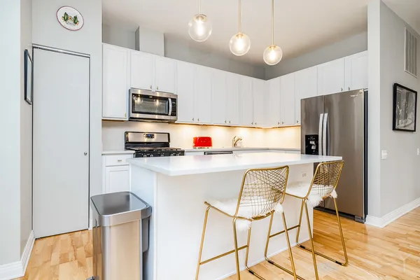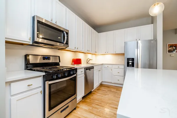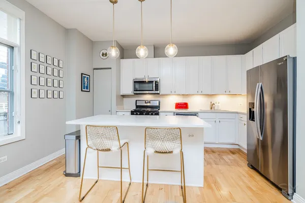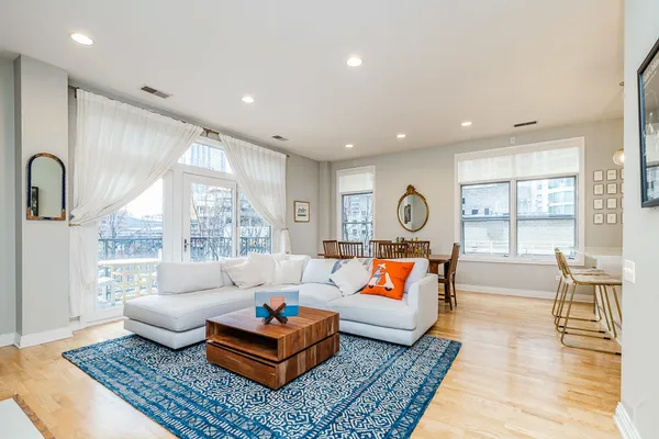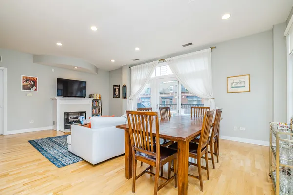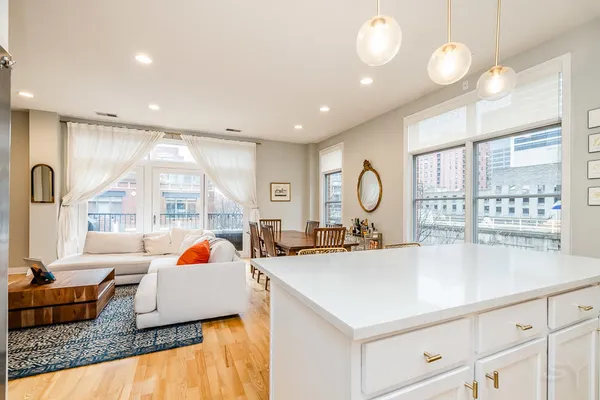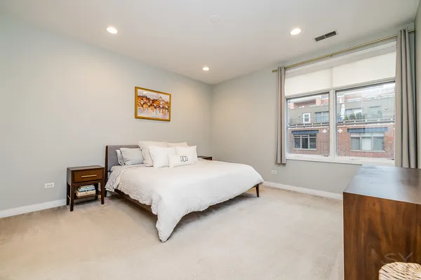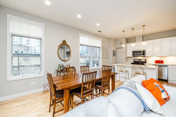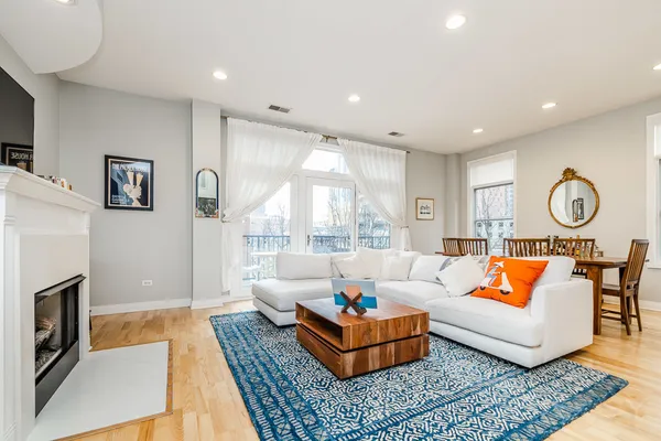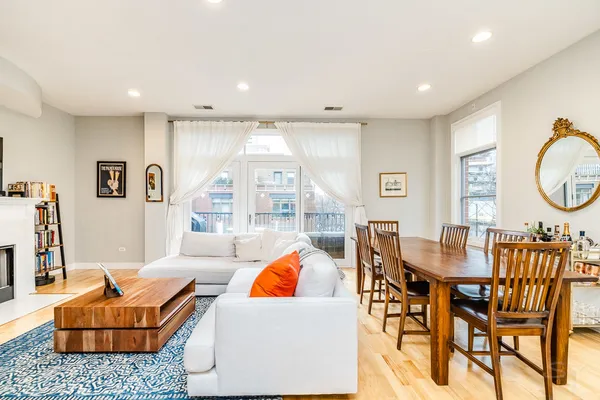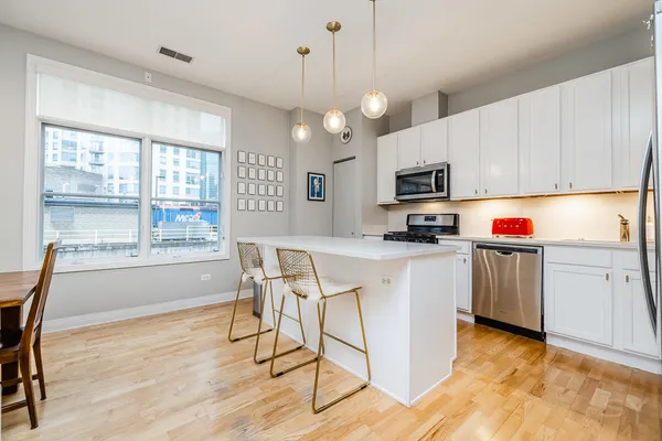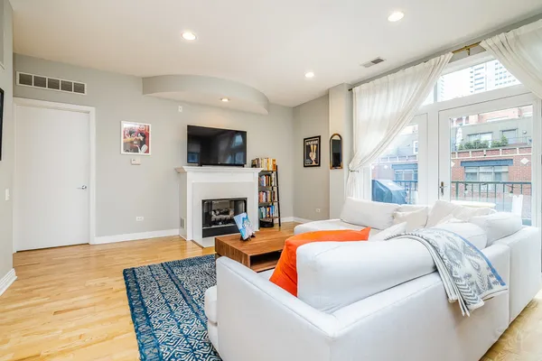 HOT FULTON MARKET! Stunning 2 Bed/2 Bath NE corner unit in intimate elevator building. This home features an updated chef's kitchen with white cabinetry, S.S. appliances, quartz countertops, and pantry. Open floor plan living area, perfect for entertaining is wrapped by huge windows that welcome an abundance of natural light. Spacious Master Suite features organized walk in closet, additional closet, marble bath with double vanity, separate glass shower & soaking tub. Large second bedroom, abundant organized closets throughout, 9.5' ceilings, hardwood floors, living/dining room wired for surround, gas fireplace & private balcony with gas hook up. Front loading in unit washer & dryer. Additional 4 x 6 storage included! Deeded garage parking space in heated garage additional $30K. Walking distance to CTA, Union Station/Metra, French Market, Randolph Street restaurants & everything that Fulton Market, River North & The West Loop have to offer. This one won't last long!